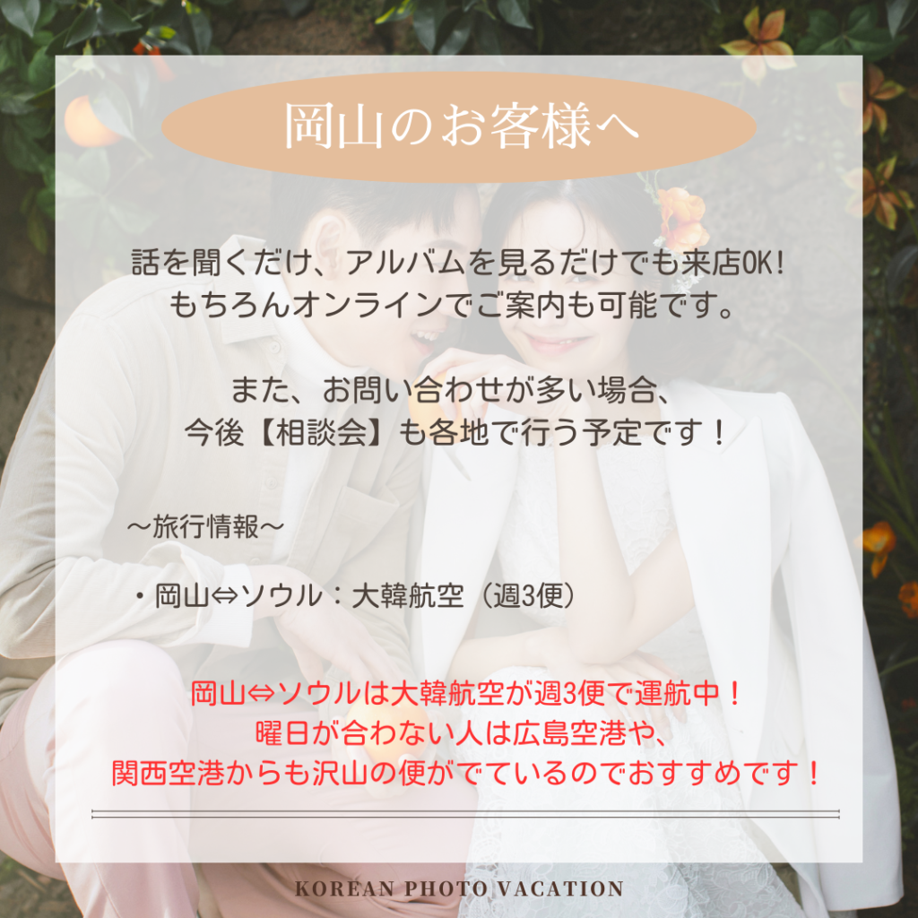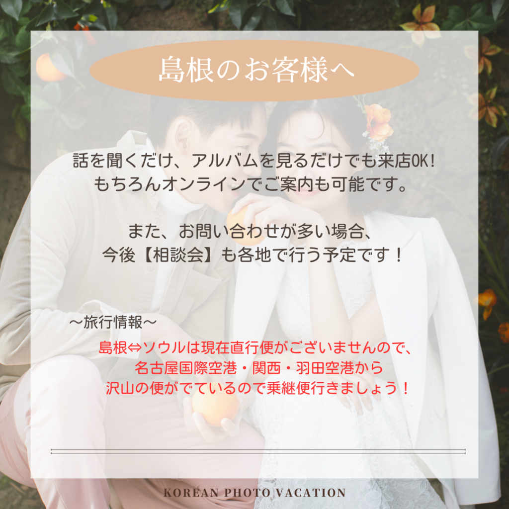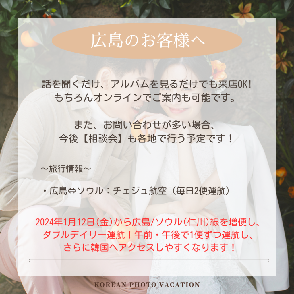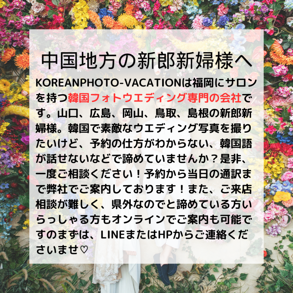 憧れの韓国でのフォトウエディングぜひ、ご相談くださいませ。