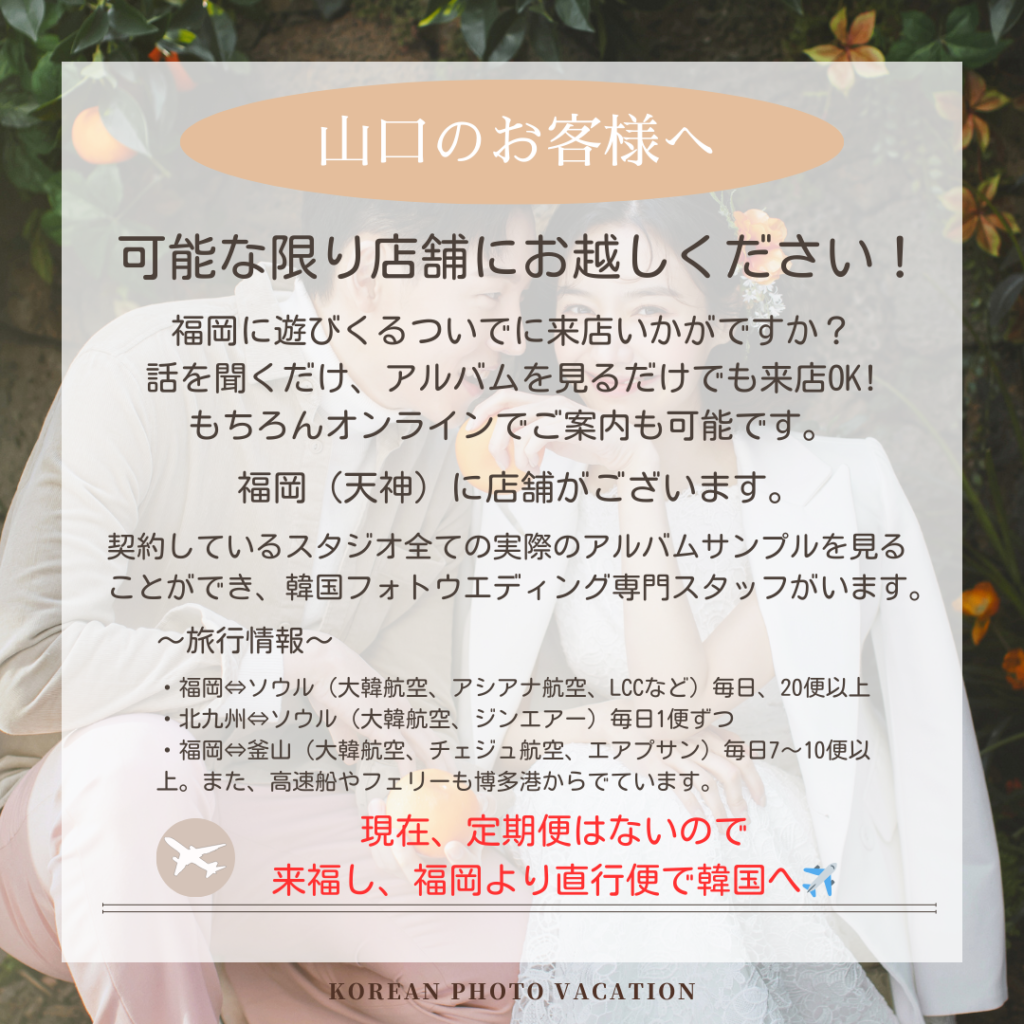 KOREANPHOTO-VACATIONは福岡・金沢・京都・富山サロンを持つ