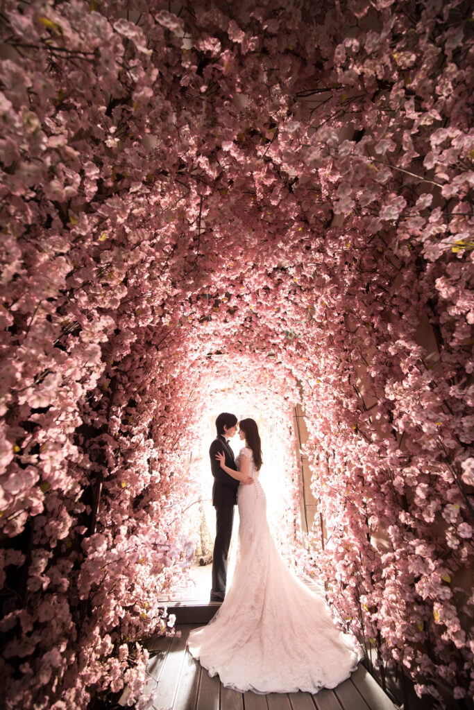 カラードレスにチェンジ後は可愛いピンクの壁のセット🩷🩷