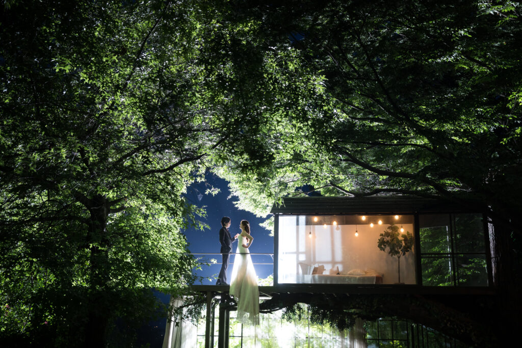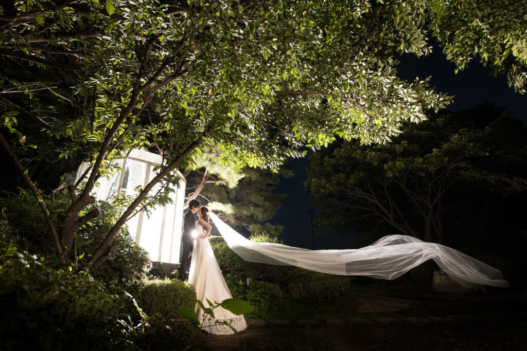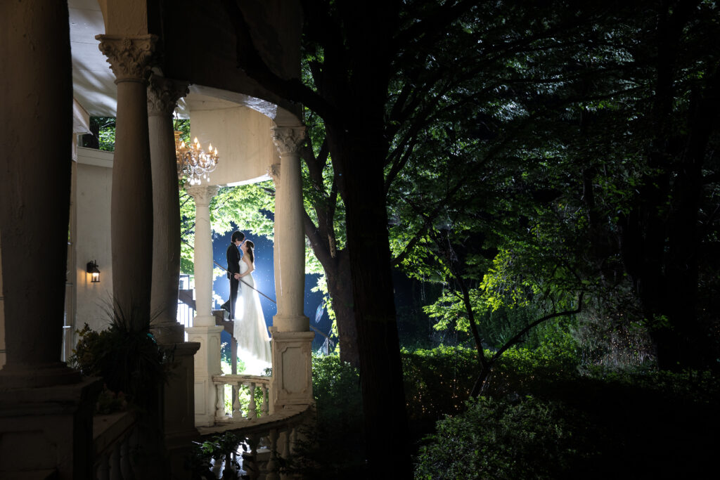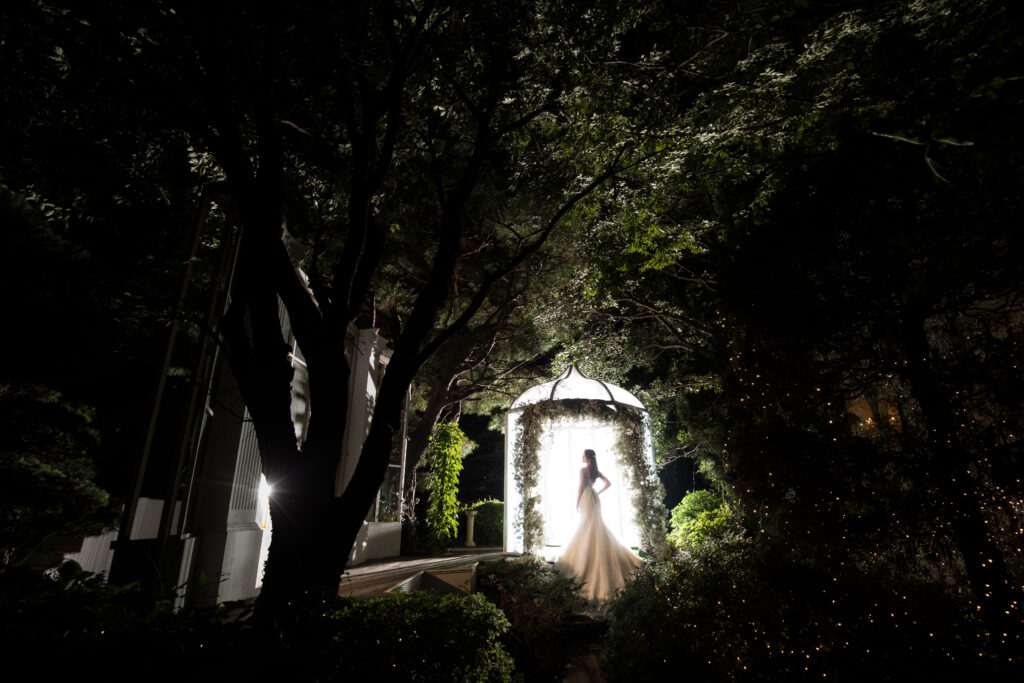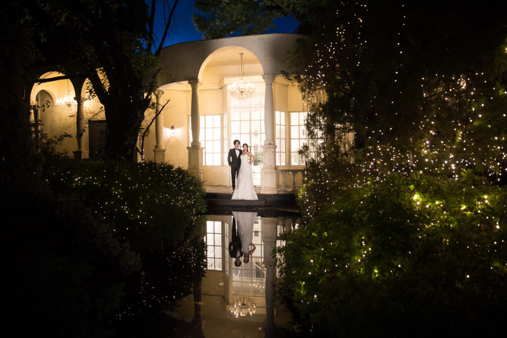池に映る水面のショットは夜も可能!