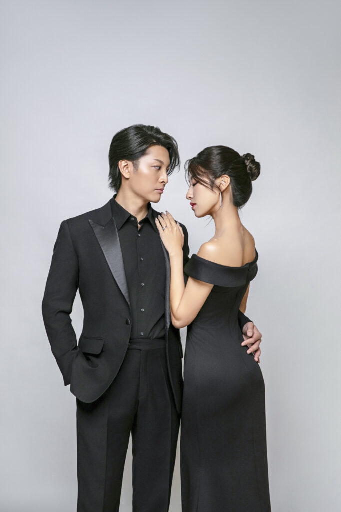 ブラックドレス×ブラックスーツが素敵です✨