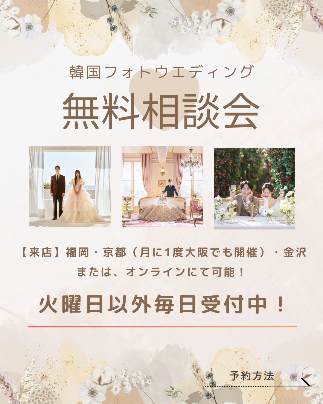 ご予約の際は【💡お名前・希望日時・希望場所】を記載ください📝担当者より返信致します。※3日以内に必ず返信いたしますので届かない場合はお電話ください。